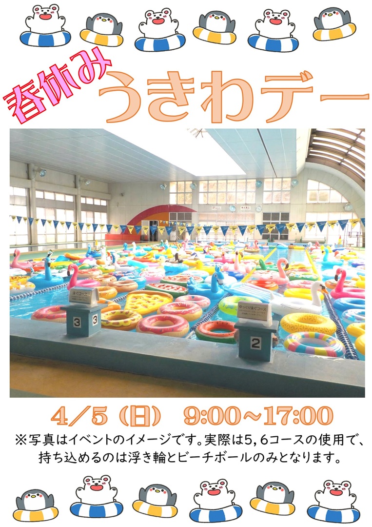 いつもようか温水プール・健康支援施設をご利用いただき 誠にありがとうございます。 4月5日(日)の9時~17時は、 浮き輪とビーチボールの持込OKといたします。![]()